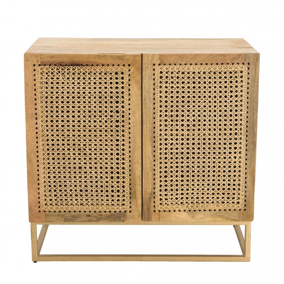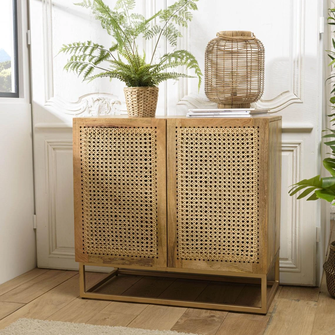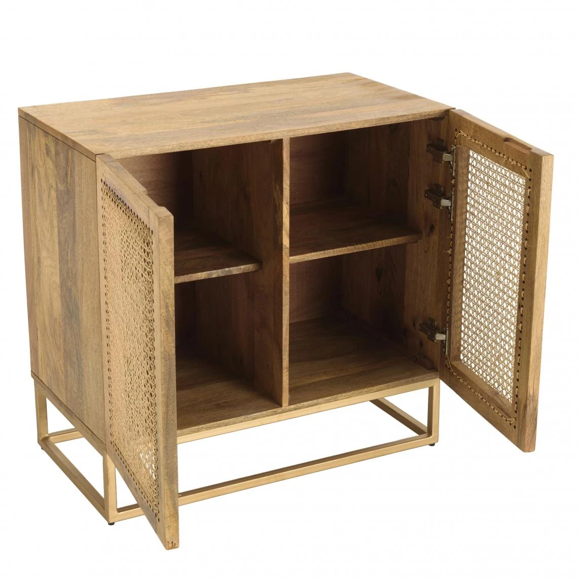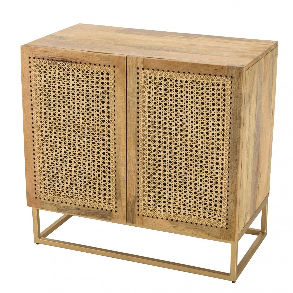 Buffet marron 2 portes bois de manguier cannage couleur naturelle cadre inférieur métal doré Laissez-vous séduire par la beauté de ce bois exotique !