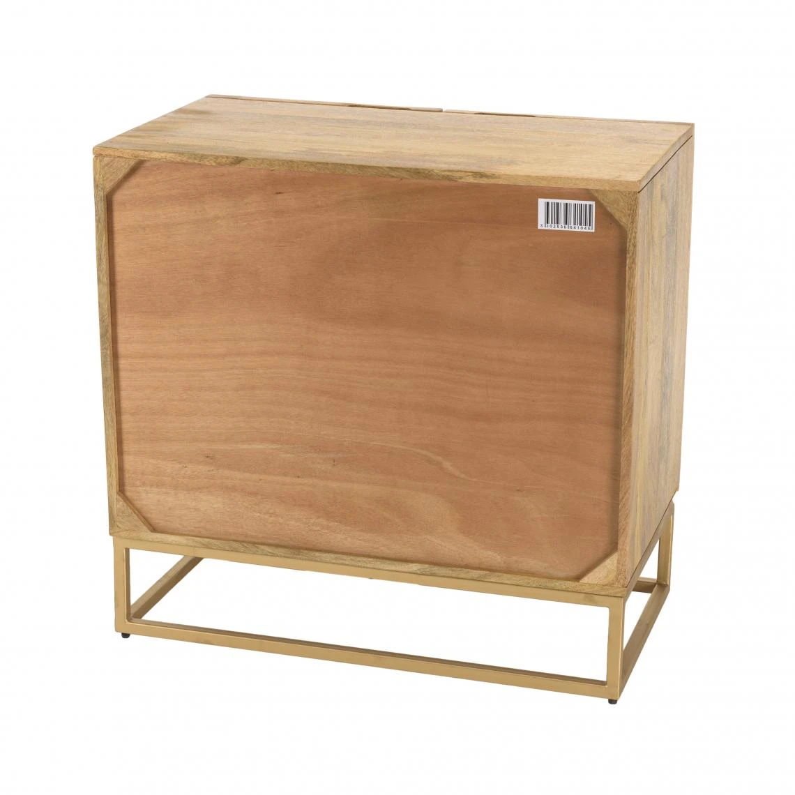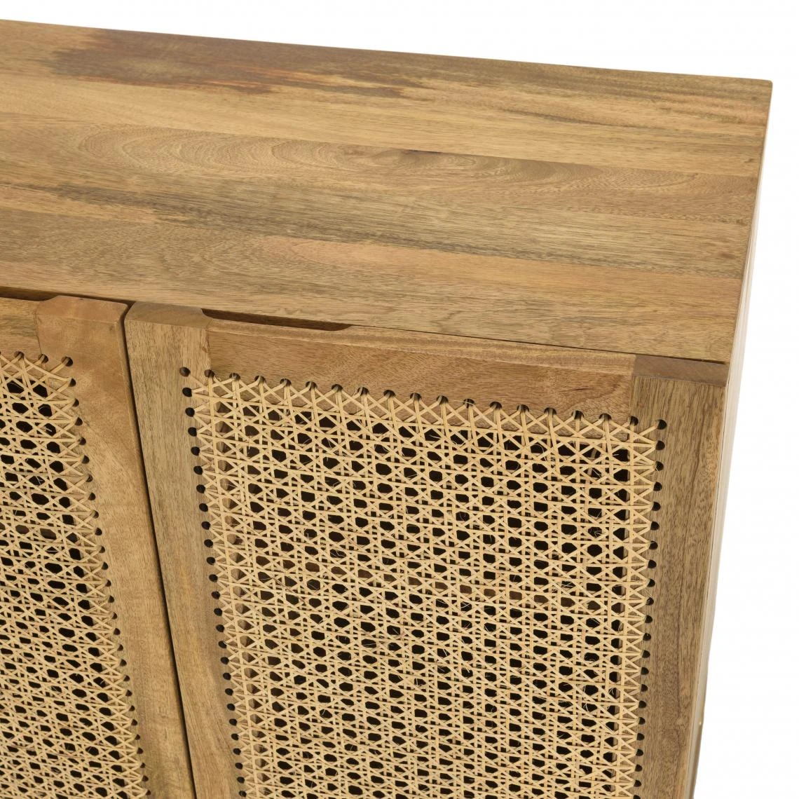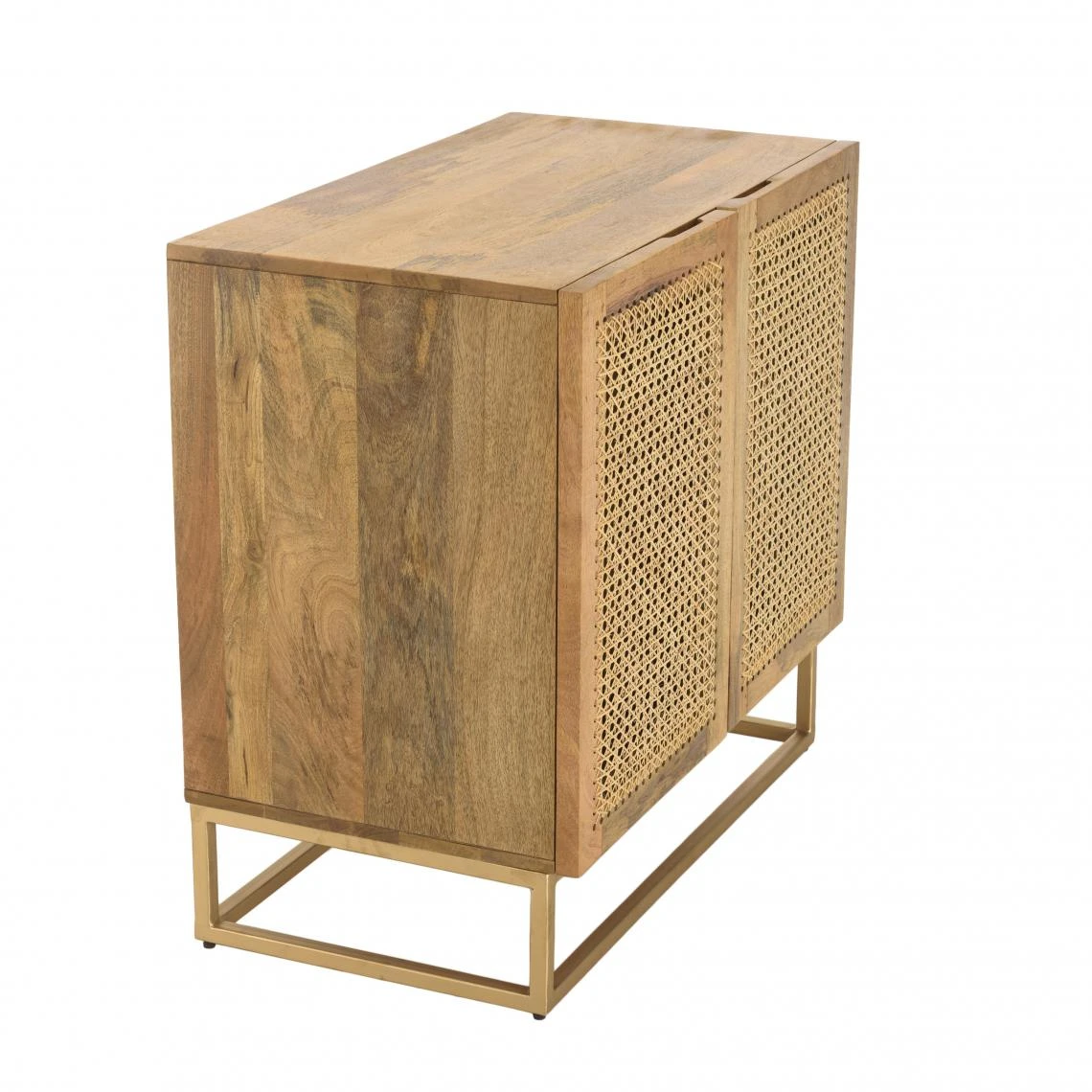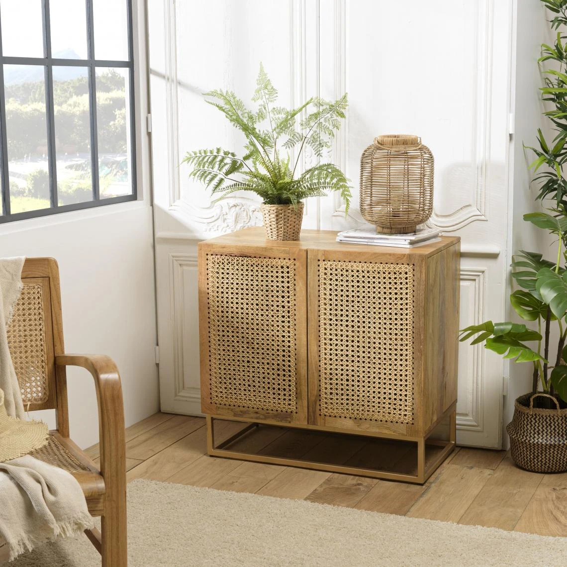 Buffet marron 2 portes bois de manguier cannage couleur naturelle cadre inférieur métal doré Laissez-vous séduire par la beauté de ce bois exotique !