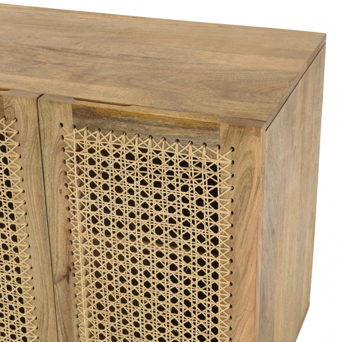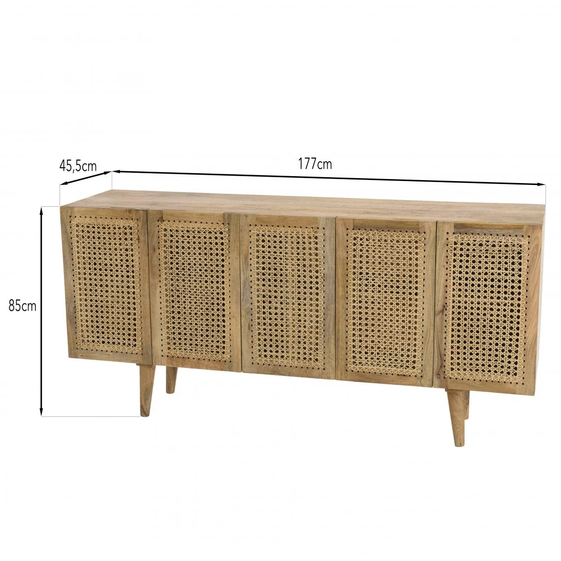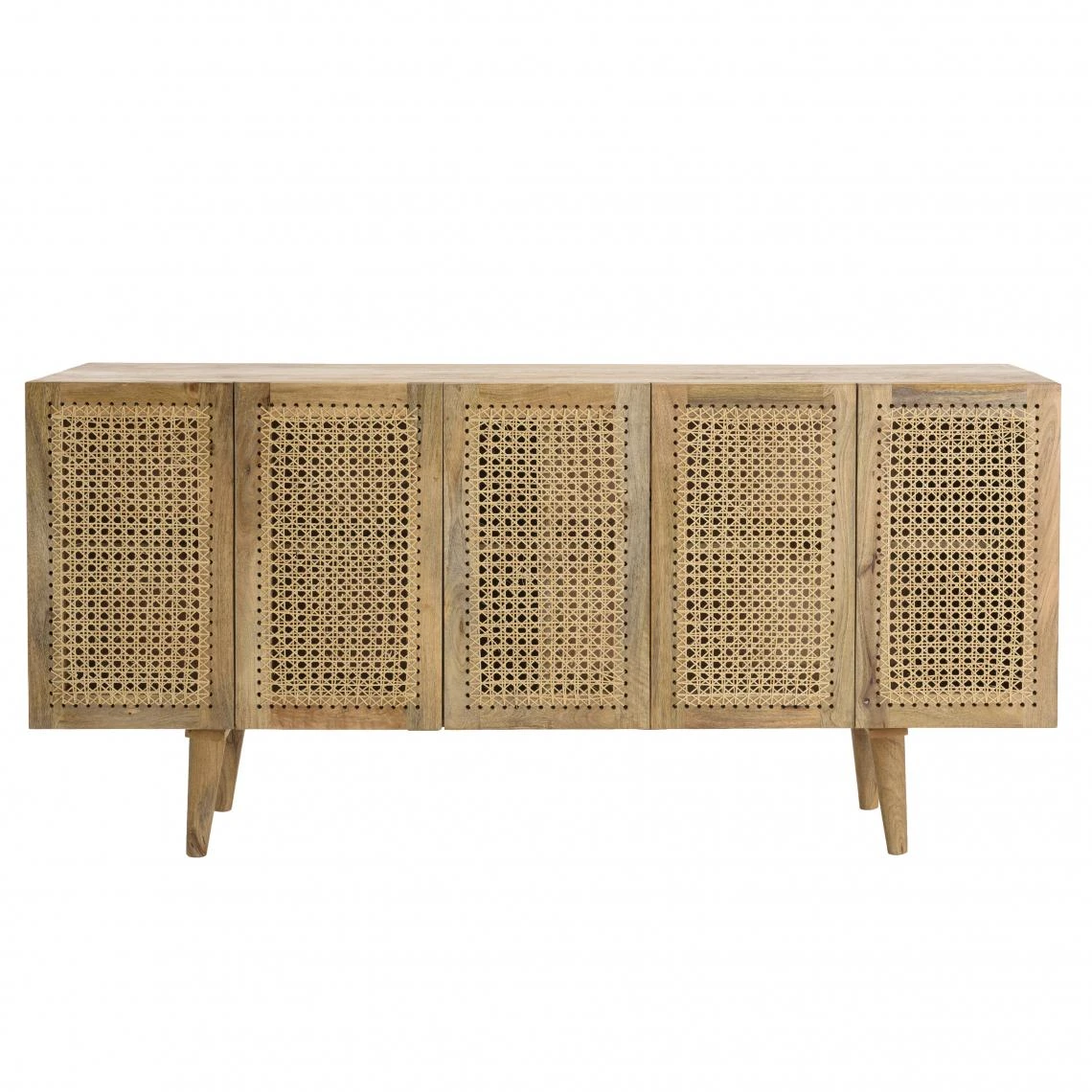 Points forts MACABANE Buffet marron 5 portes bois de manguier et cannage naturel ISA
