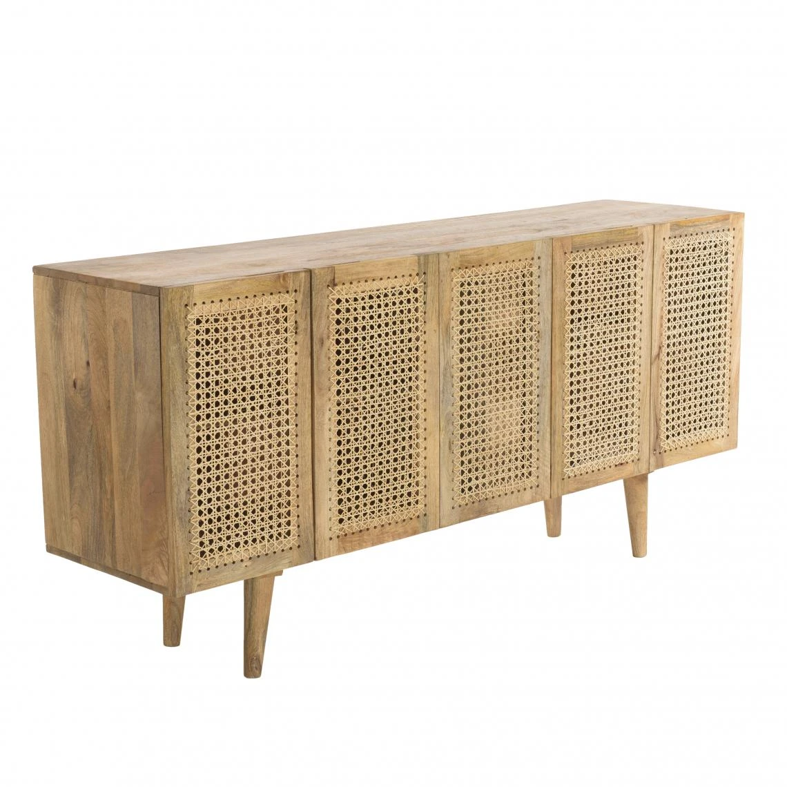 Buffet marron 5 portes bois de manguier et cannage couleur naturelle Craquez pour ce joli buffet design en bois de manguier et rotin.