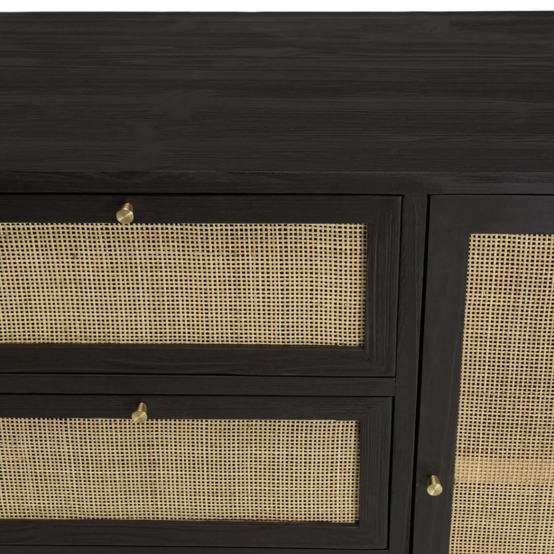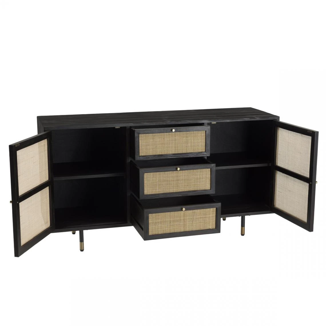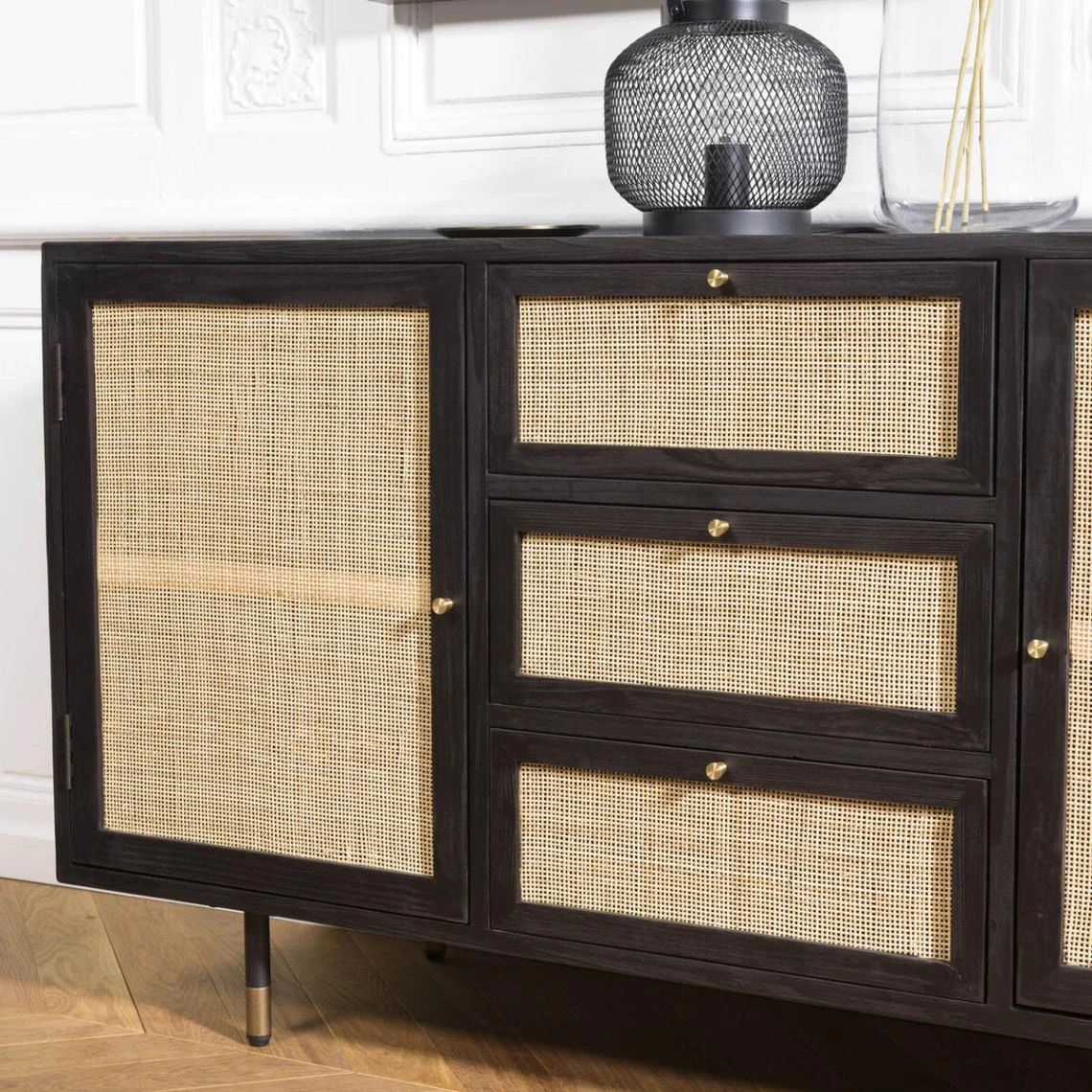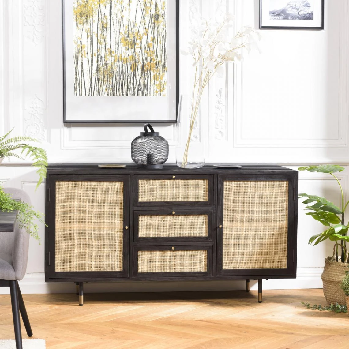 Points forts MACABANE Buffet Noir 2 Portes Coulissantes 1 Porte Abattante Cannage YANIS