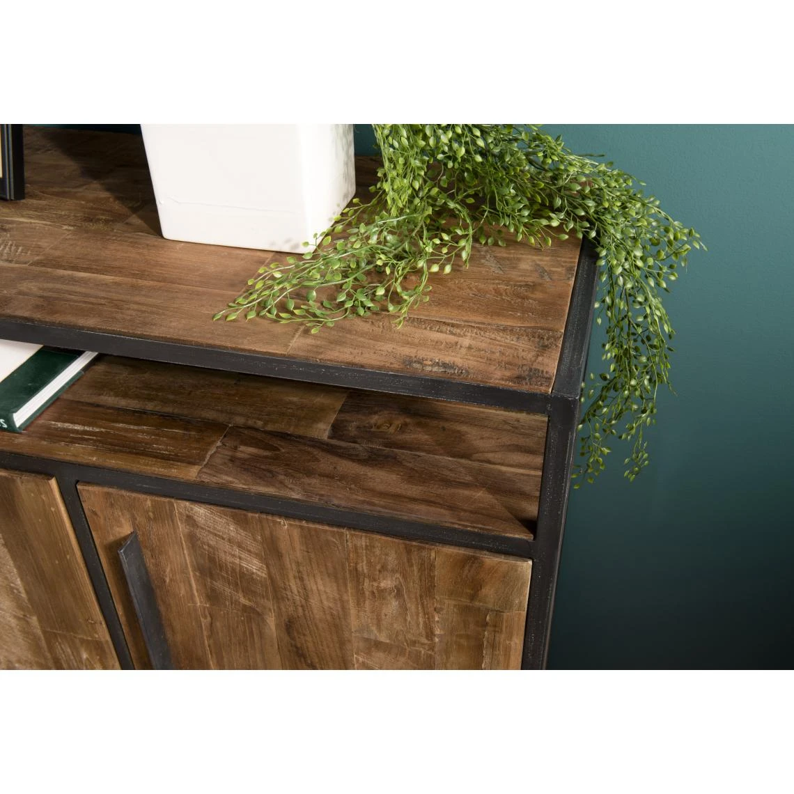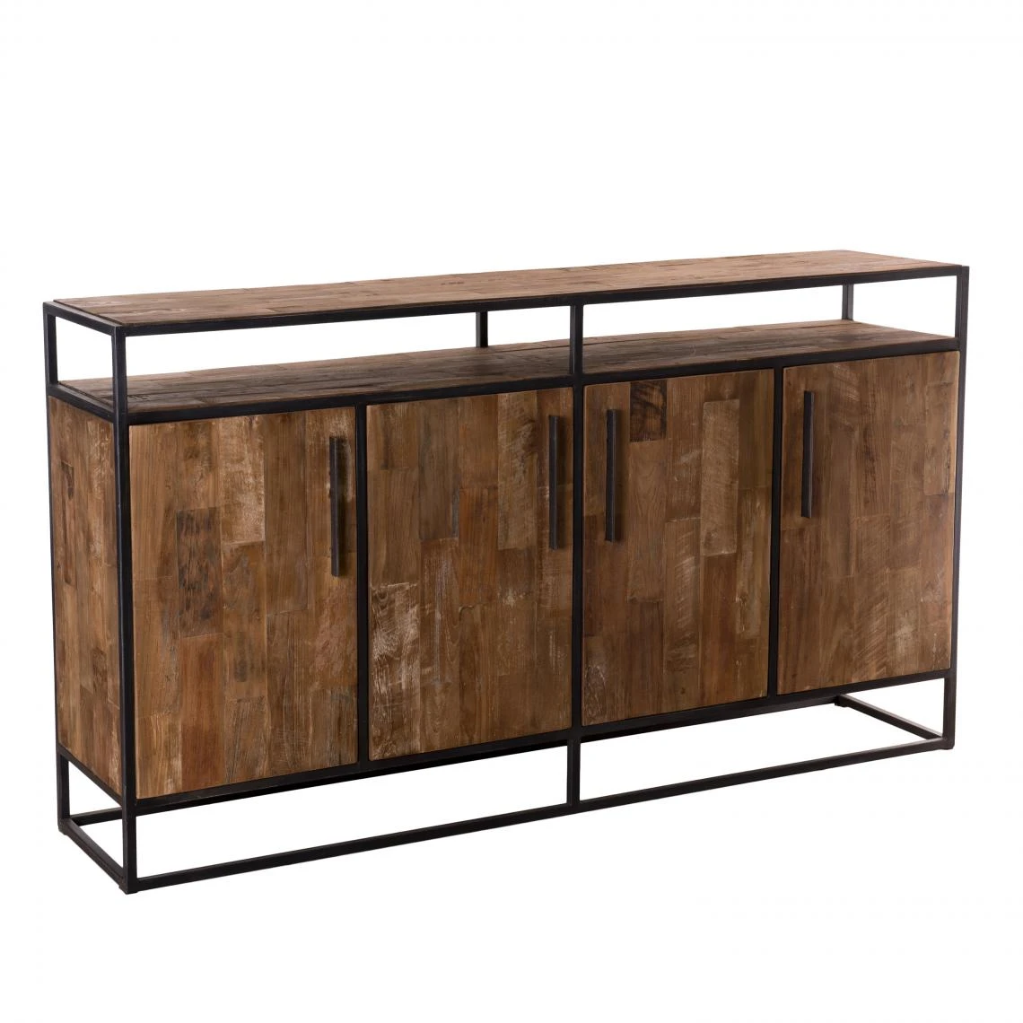 Points forts MACABANE Buffet SIXTINE 4 Portes 1 Étagère Bois Teck Recyclé Et Métal