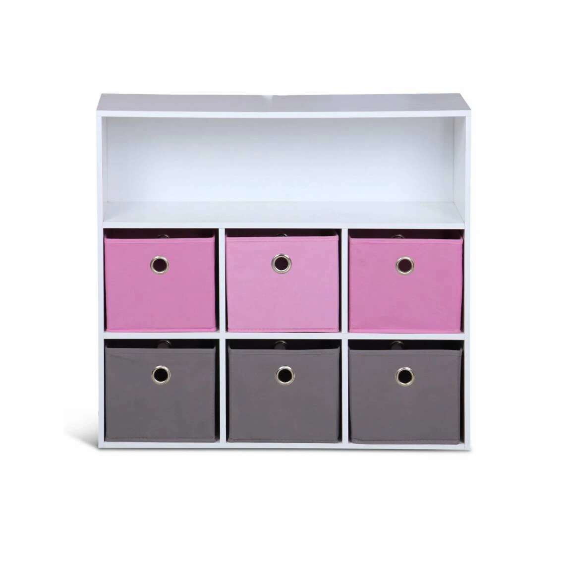 Rangez facilement la chambre de votre enfant avec ce meuble qui peut accueillir vêtements, livres ou jouets. Les 3 paniers gris et les 3 paniers roses apportent une touche de couleur à l’ensemble. Vos enfants pourront facilement manipuler les paniers en tissu qui sont légers. Le meuble est à la hauteur de votre enfant, il pourra facilement y ranger ses petites affaires. Ce meuble au design sobre est parfait pour une chambre d’enfant ou pour une salle de jeux.