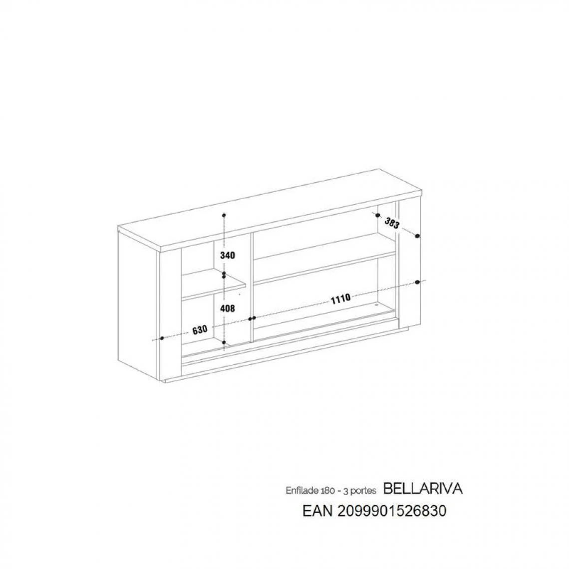 Un buffet pratiqueFabriqué en Europe, le buffet BELLARIVA est un meuble contemporain aussi élégant que pratique. Doté d’un grand espace de rangement, il se compose de trois portes dissimulant trois niches séparées par une étagère à mi-hauteur. Ce buffet de L. 180 – H. 85 – P. 46 cm est constitué de panneaux de particules habillés d’un placage en mélaminé, qui a l’avantage de se nettoyer facilement avec un chiffon légèrement humidifié. Idéales pour une utilisation silencieuse et sécurisante, les portes de ce buffet sont munies d’un système de fermeture avec ralentisseur soft close qui empêche les claquements.Une inspiration moderneVous souhaitez décorer votre salle à manger de manière contemporaine ? Issu de la collection BELLARIVA, ce buffet blanc/gris arbore un look unique avec ses portes laquées haute brillance. Vous apprécierez aussi le système d’éclairage à LED qui permet de créer une lumière d’ambiance.