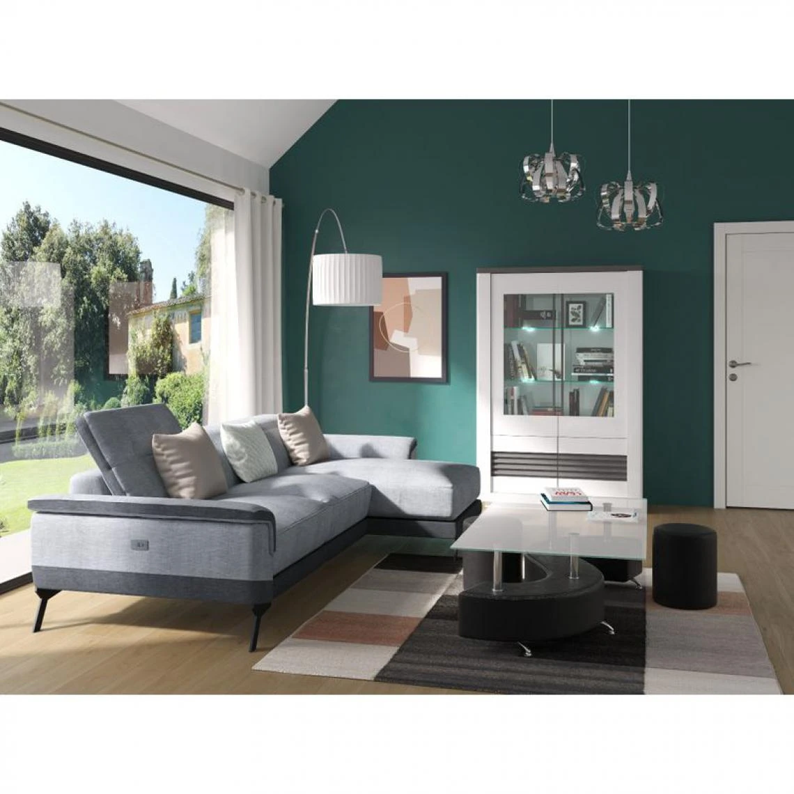 Cette vitrine blanche/chêne gris apporte beaucoup de charme à une décoration moderne. Vous apprécierez tout particulièrement son revêtement blanc brillant très design et ses détails contrastants au niveau du plateau supérieur et des portes inférieures. Cette vitrine très élégante est issue d’une collection complète d’éléments de salle à manger.