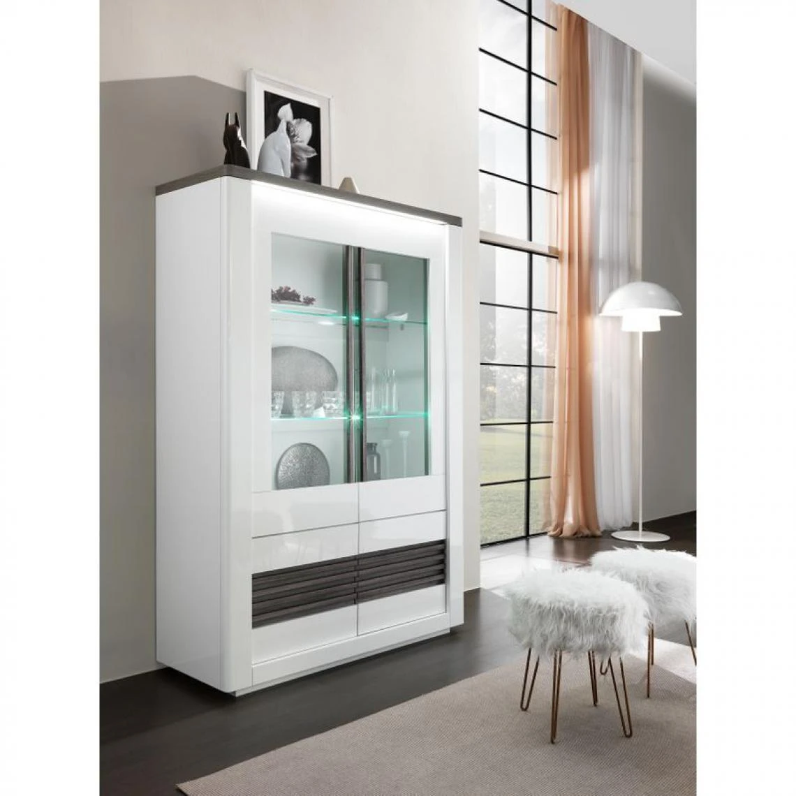 Points forts Modern Living vitrine 4 portes VERTIGO blanc/chêne gris