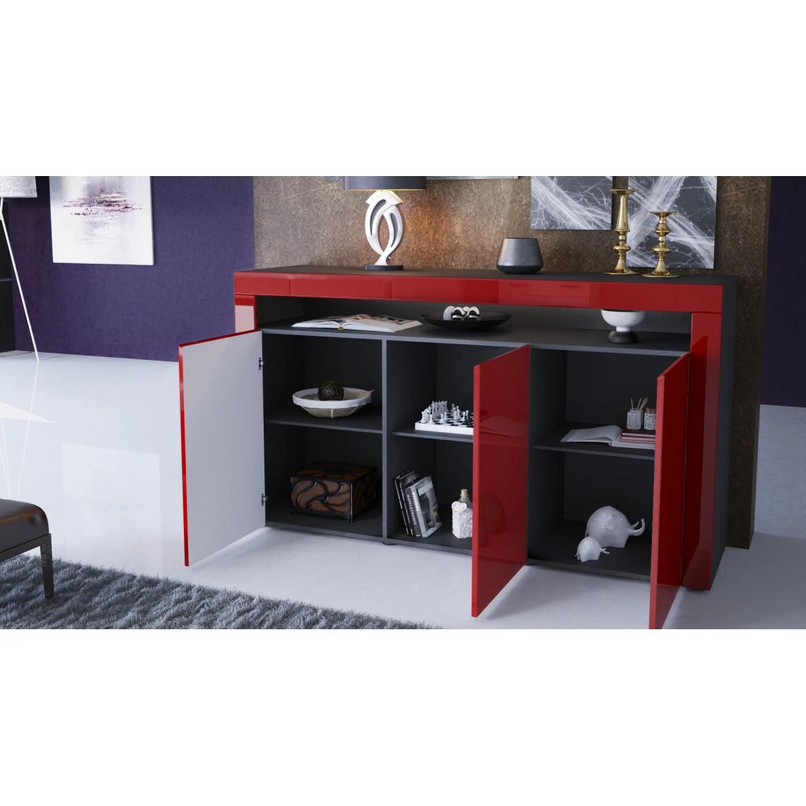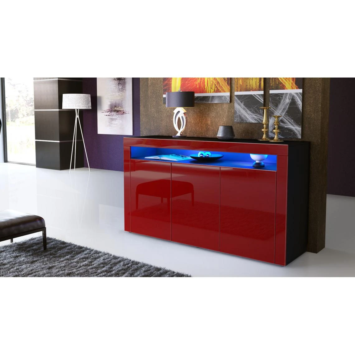 Points forts Mpc Bahut laqué noir mat et bordeaux avec led