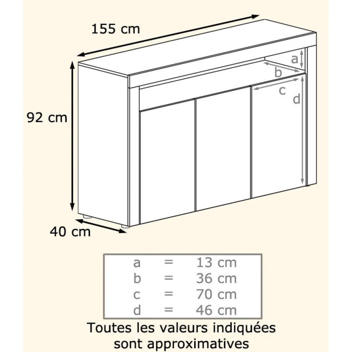 Dimension du buffet en cm (HxLxP) : 92 x 155 x 40 cm