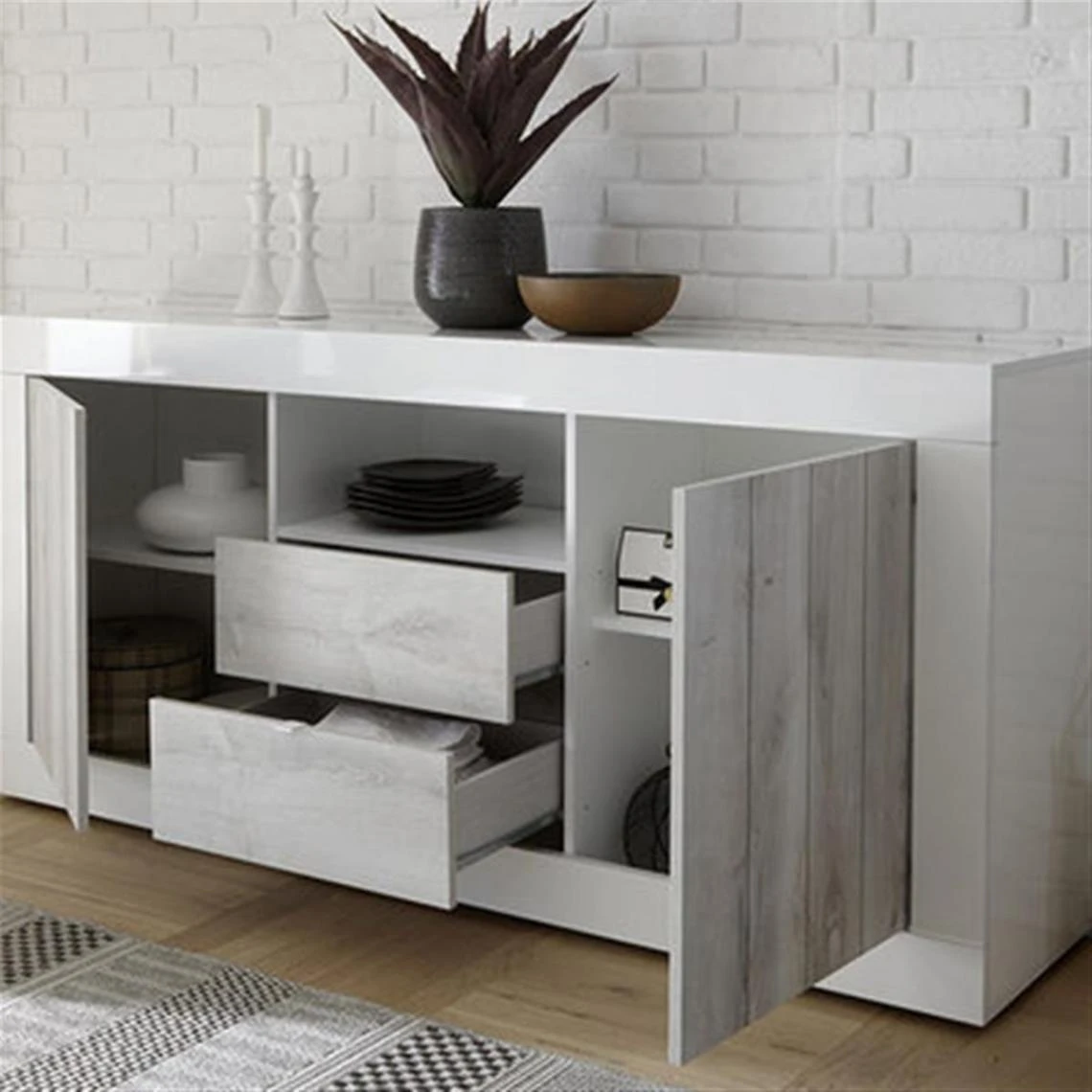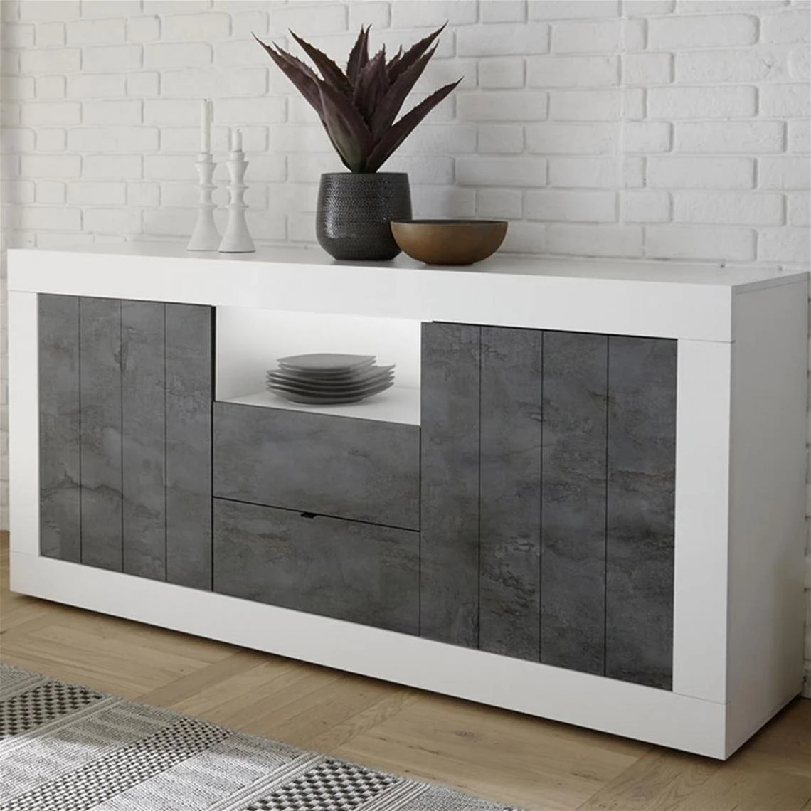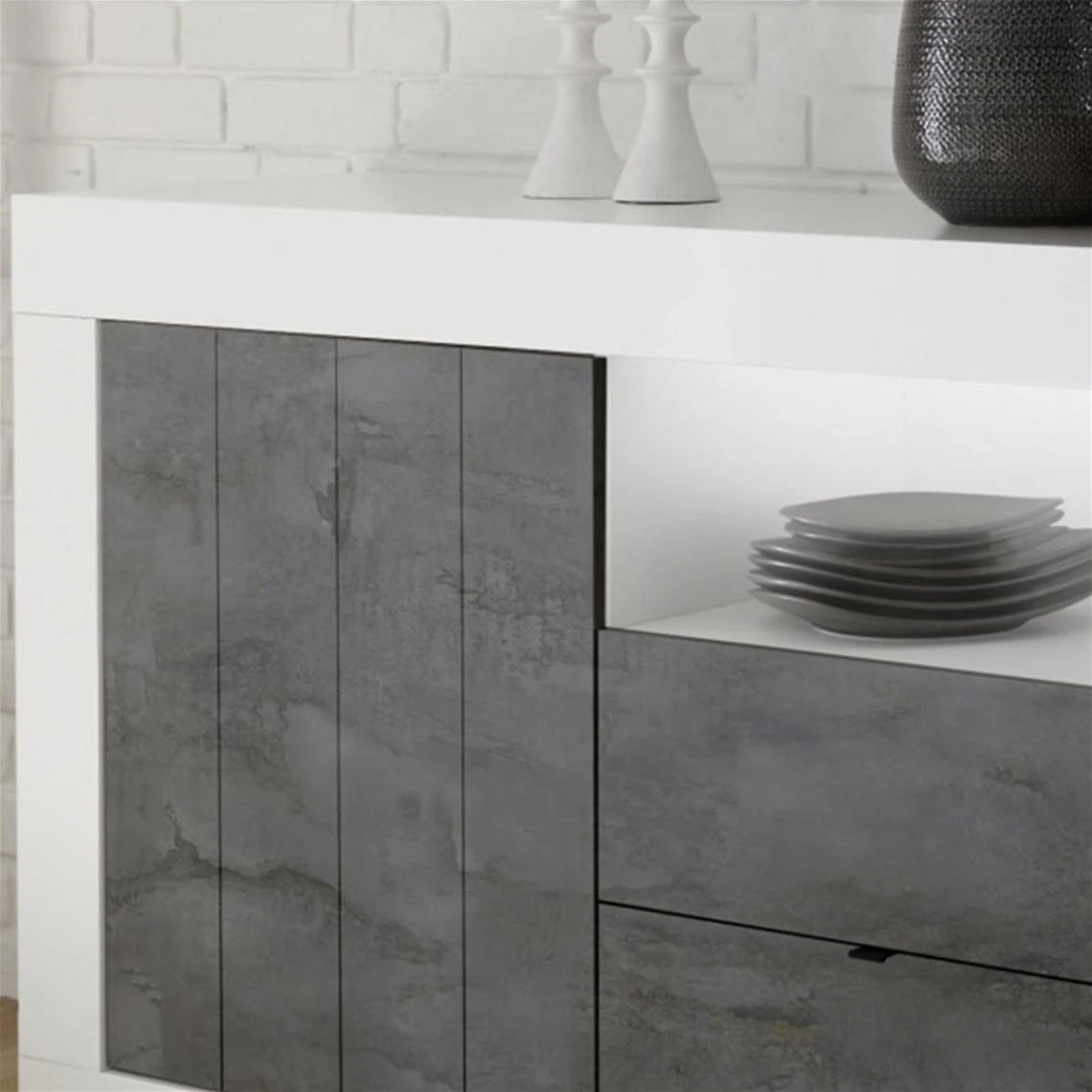 Points forts Nouvomeuble Bahut 180 cm moderne blanc effet béton gris URBAN 6