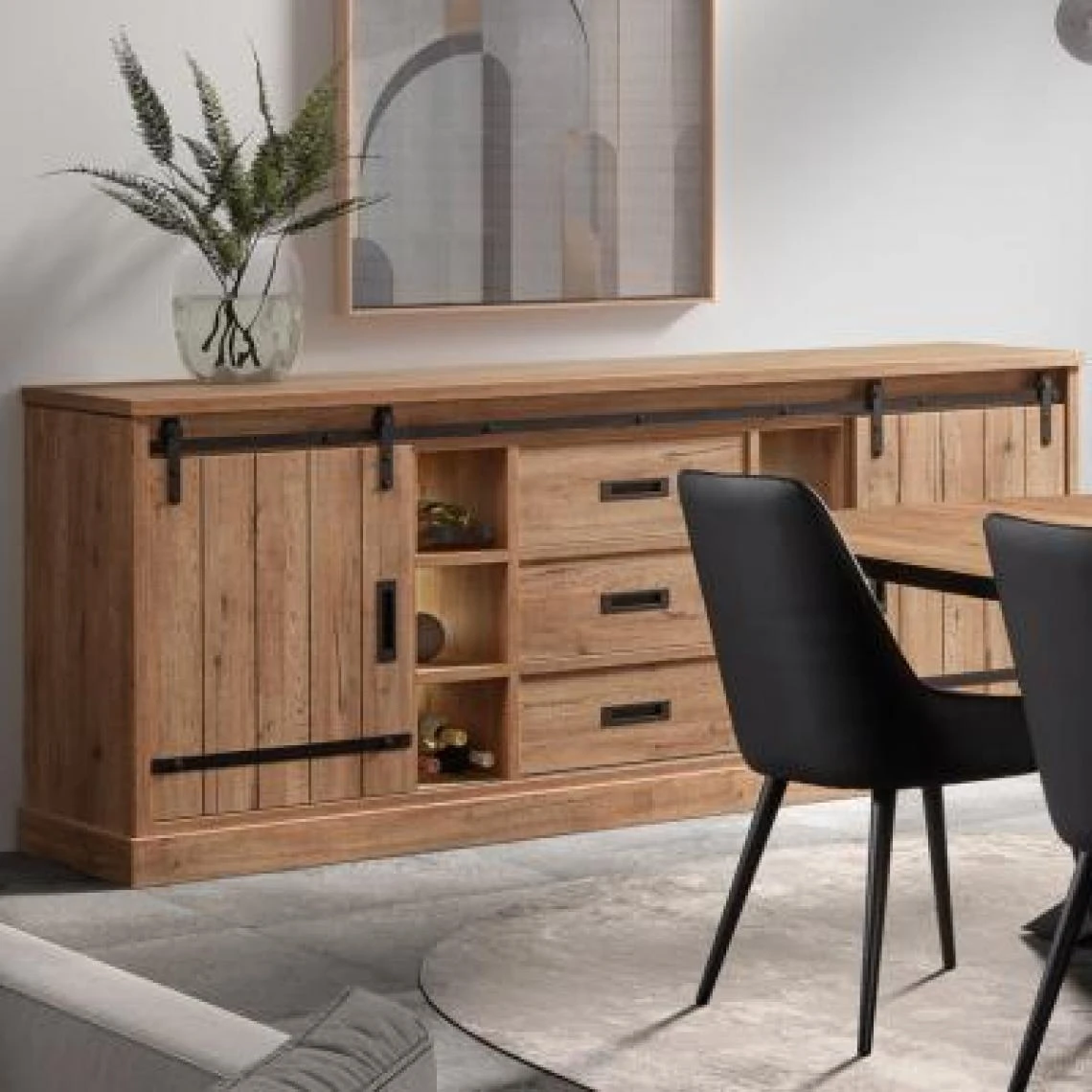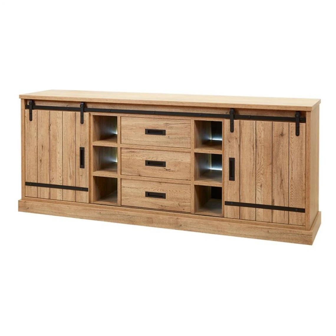 Points forts Nouvomeuble Bahut contemporain couleur chêne doré PIERRE