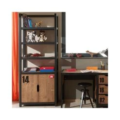 Points forts Nouvomeuble Bibliothèque de chambre enfant en bois industrielle BRONX