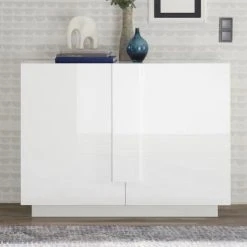 Aménagez une entrée ou le coin d’une pièce avec le petit buffet JUNON 2. Il se placera facilement grâce à sa taille de 120 cm. Pour ranger des papiers, des chaussures ou de la vaisselle, son utilité dépendra de l’endroit choisi par vos soins. Blanche et étincelante, la laque va illuminer votre intérieur. Dans une pièce sombre, le meuble va apporter de la fraîcheur. Sa qualité italienne est la valeur sûre d’un meuble aux finitions soignées.