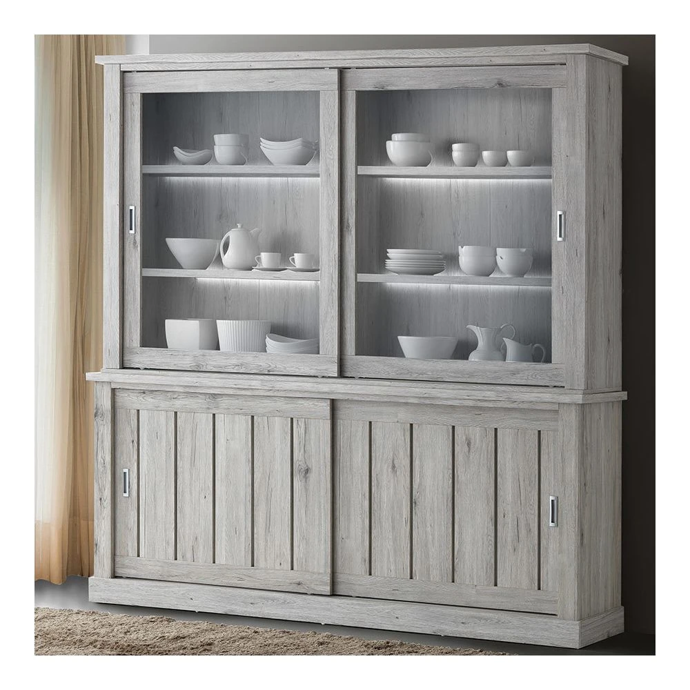 Points forts Nouvomeuble Grand vaisselier 220 cm LED couleur chêne rustique EDYNE
