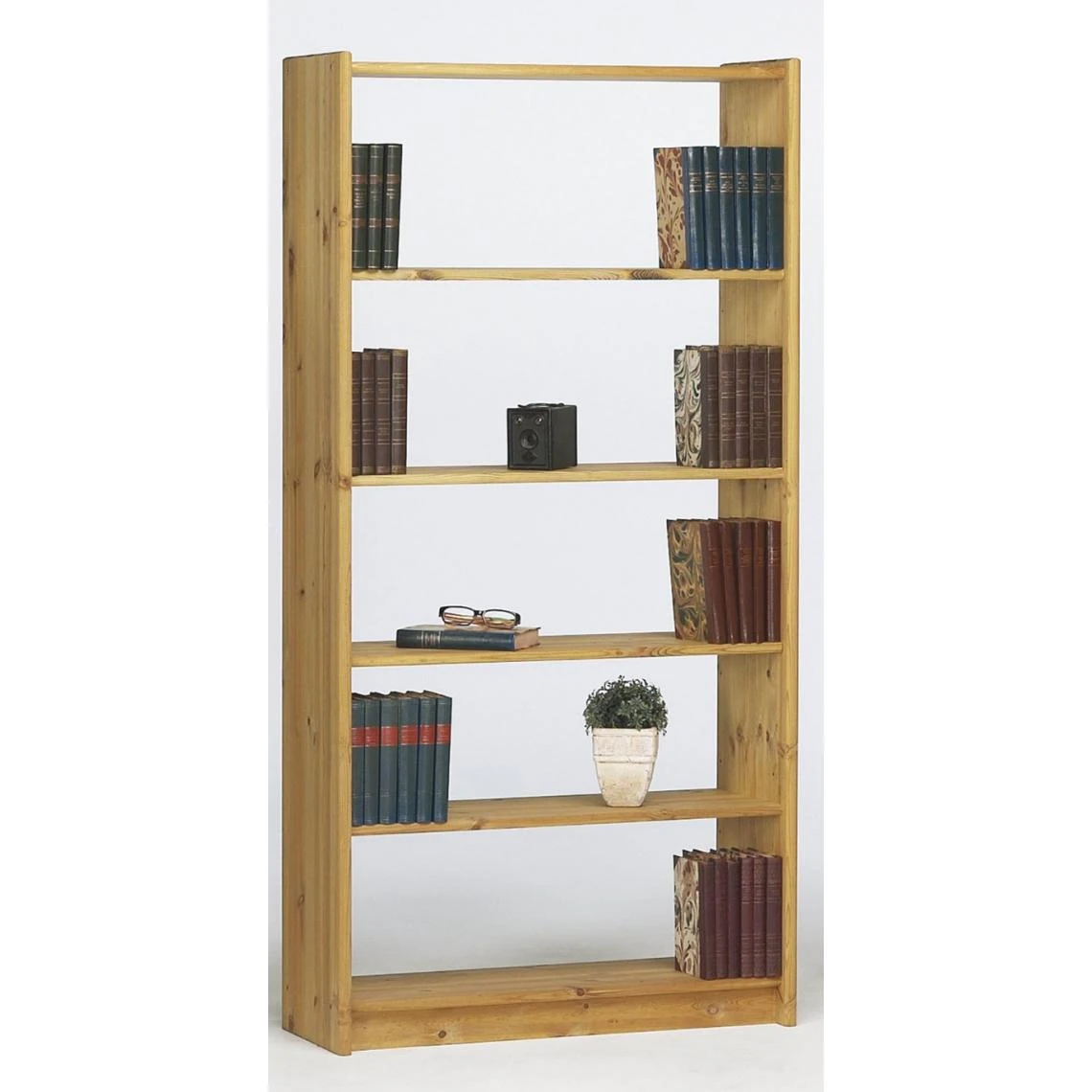 Bibliothèque avec 4 étagères en pin massif naturel lessivé/huilé. Livré avec 3 tablettes réglables en hauteur et 1 tablette fixe. Elle est élégante et pratique. Dimensions : 170 x 84 x 30 cm. Matière : Pin massif. Coloris : naturel lessivé / huilé. Poids : 24 Kg