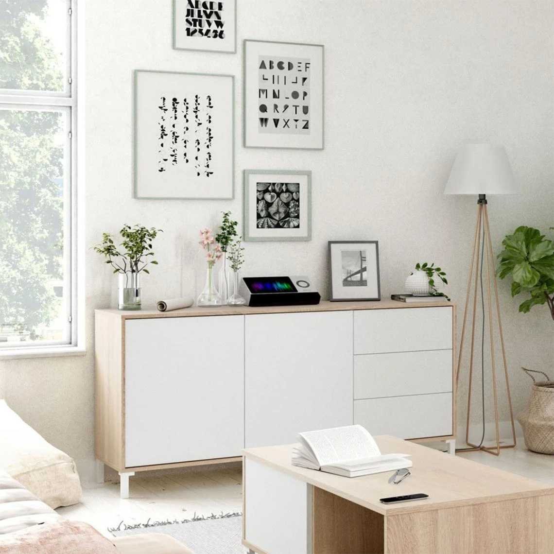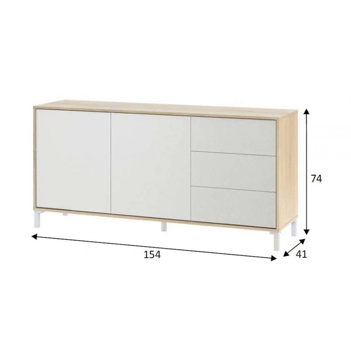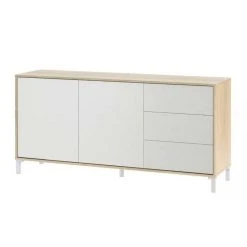 Avec le buffet bon marché, vous pouvez meubler votre salon avec un joli style nordique et économiser de l’argent en augmentant la capacité de stockage. Il a deux portes à ouverture latérale et trois tiroirs de grande capacité. Fabriquée en panneau aggloméré haute densité avec finition mélamine de qualité (matériau ayant une surface non poreuse et très résistante).