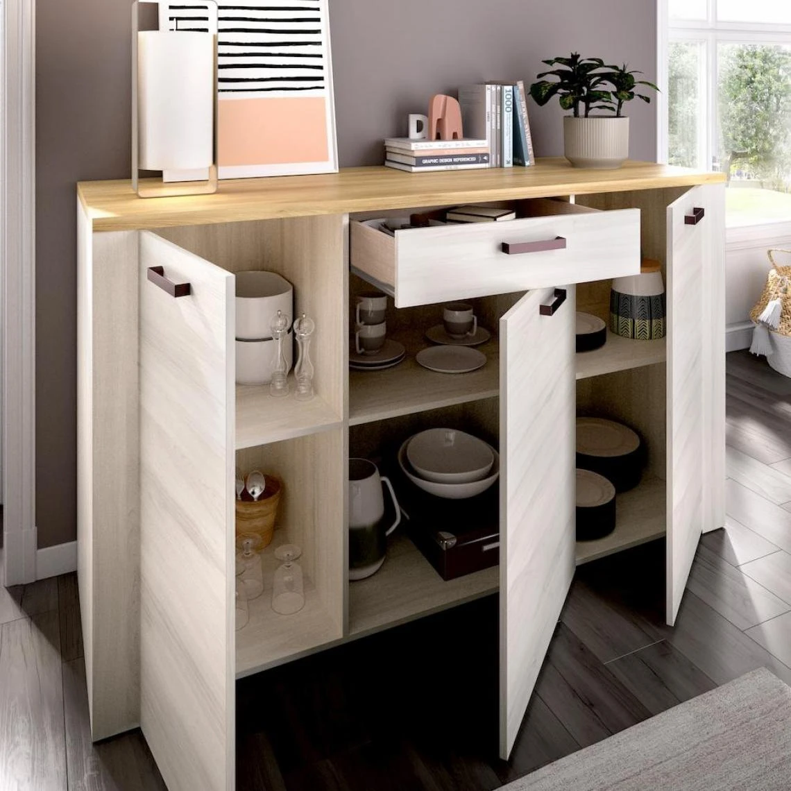 Buffet / Meuble de rangement en panneaux de particules mélaminé coloris Fines / Milano de :
