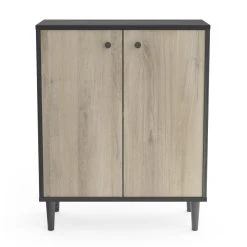 Ce buffet avec 2 portes est un meuble de rangement élégant. Sa couleur noir associée à du bois clair apporte de la chaleur à la pièce et séduit par son contraste audacieux. Facile à monter. Dimensions : longueur 60 x profondeur 28 x hauteur 75 cm