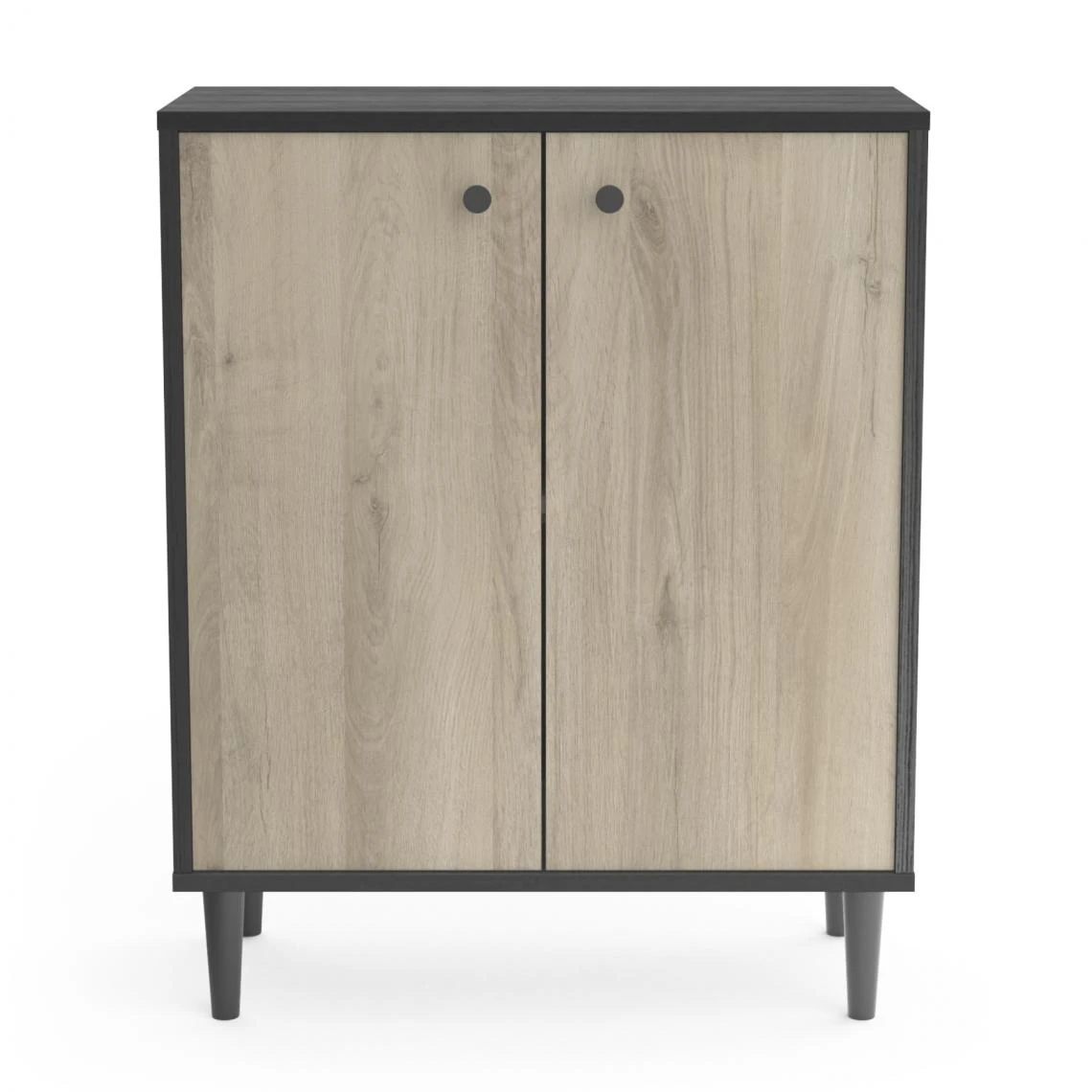 Points forts Pegane Meuble de rangement de 2 portes coloris chêne kronberg / noir – longueur 60 x profondeur 28 x hauteur 75 cm