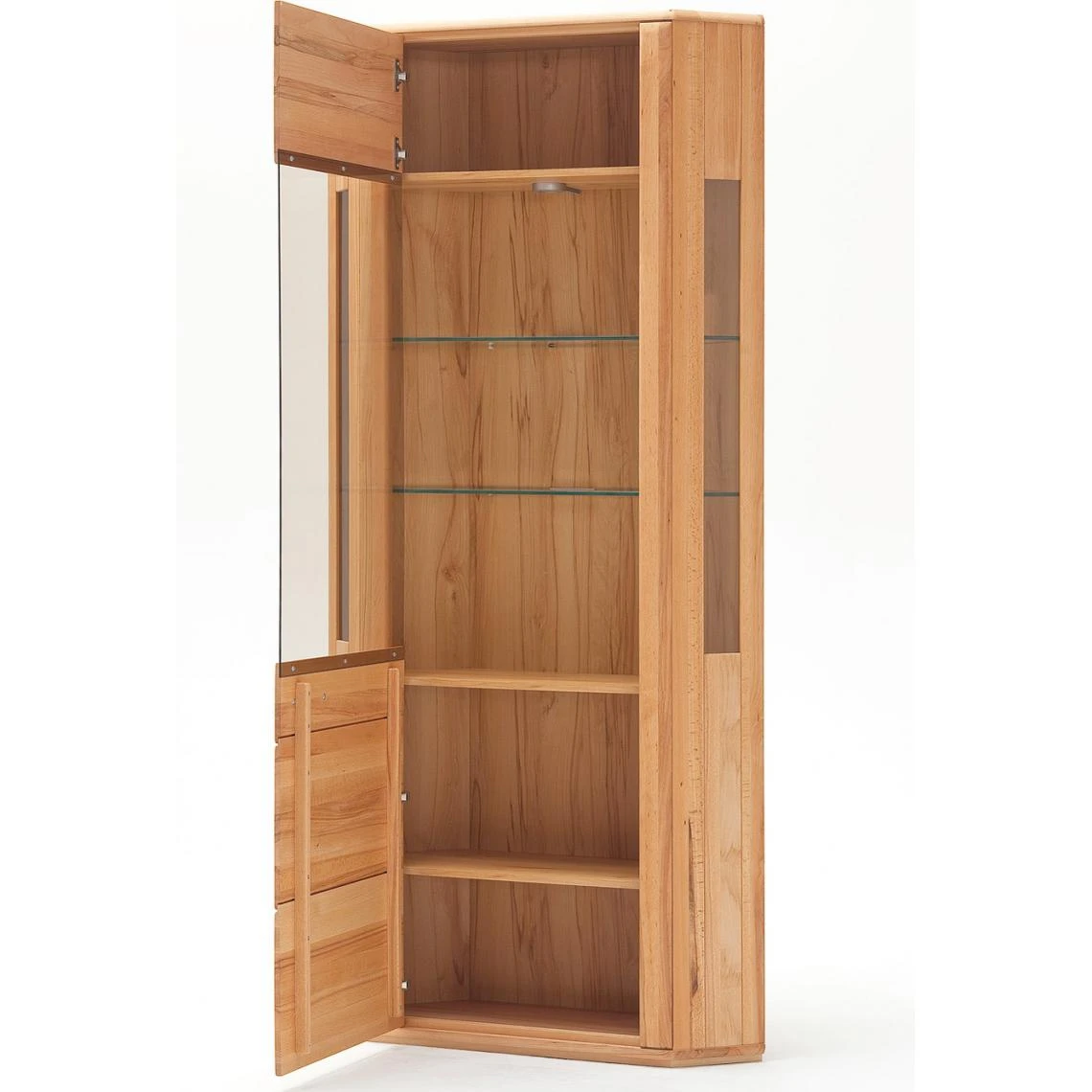 Points forts Pegane Vitrine d’angle / vaisselier coloris hêtre huilé – Longueur 69 x Hauteur 209 x Profondeur 69 cm