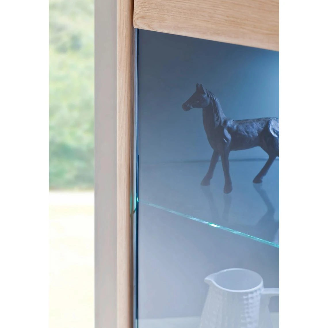 Exposez votre plus belle vaisselle avec ce vaisselier coloris chêne blanchi huilé, avec sa porte et ses nombreux rangements intérieurs, ce meuble vitré sera très utile dans votre salle à manger ou dans votre cuisine. Livré monté.