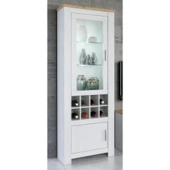 Vitrine, équipée d’1 porte avec éclairage LED coloris chêne et pin andersen; en panneaux de particules mélaminés.