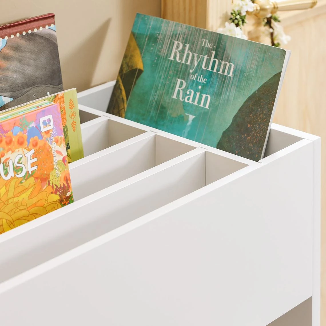 - Grâce aux 5 séparations amovibles et réglables, le compartiment ouvert en haut peut être divisé séparément en thèmes des magazines ou des livres pour enfants. Les 5 séparations amovibles facilitent également le nettoyage.