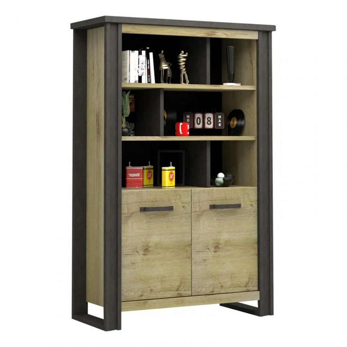 Offrez une touche d’élégance à votre décor d’inspiration « factory » avec cette bibliothèque imitation chêne. Sa finition discrète mais raffinée agrémentera votre intérieur de son charme industriel. Pour créer un cadre digne d’un loft, mariez-la avec des meubles en bois foncé et décorez-la de figurines en métal.