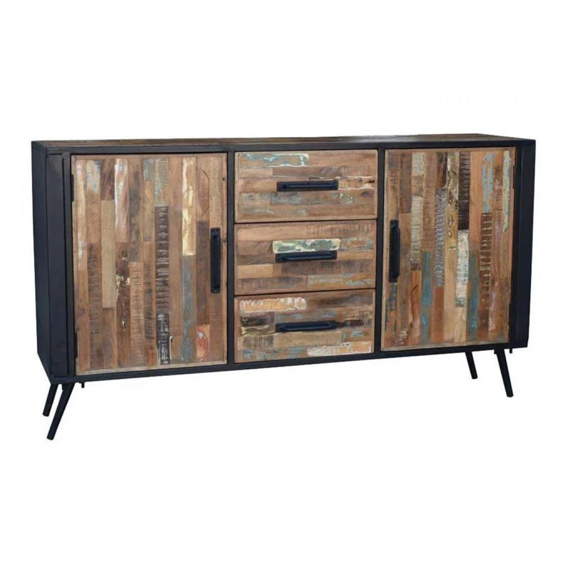 Points forts Tousmesmeubles Buffet 2 portes 3 tiroirs Métal/Bois massif- WINSON