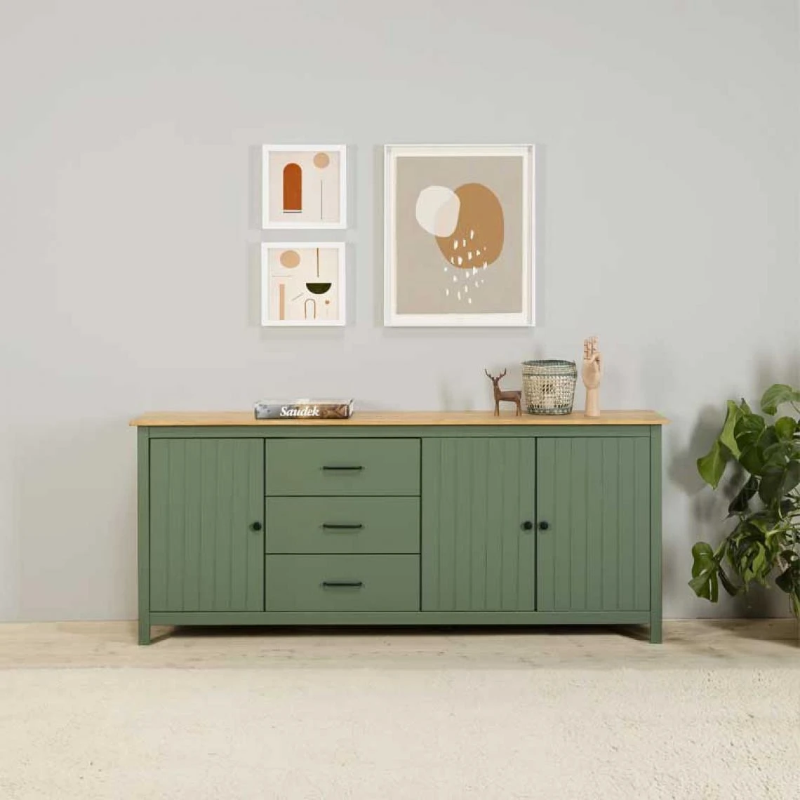 Points forts Tousmesmeubles Buffet 3 portes 3 tiroirs Bois/Vert – DARANMI