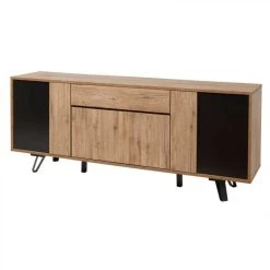 Pour une salle à manger au goût du jour, cette grande enfilade propose le mariage d’éléments laqué noir et d’une finition Chêne Miel au rendu plus vrai que nature.
