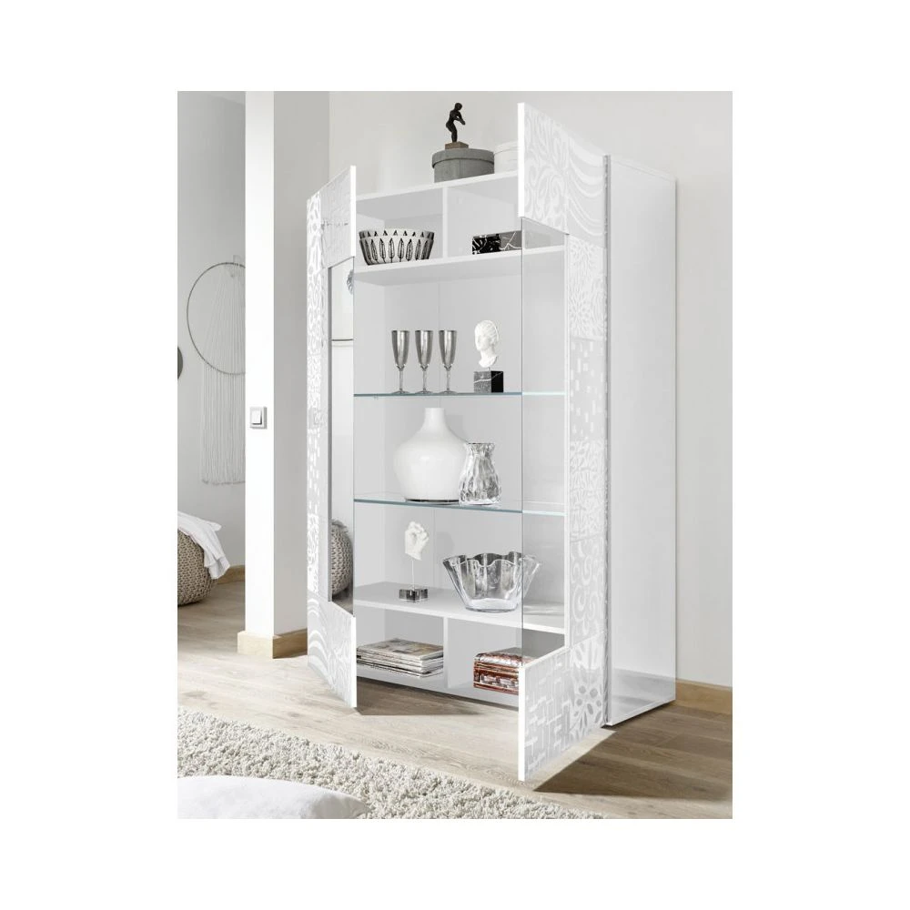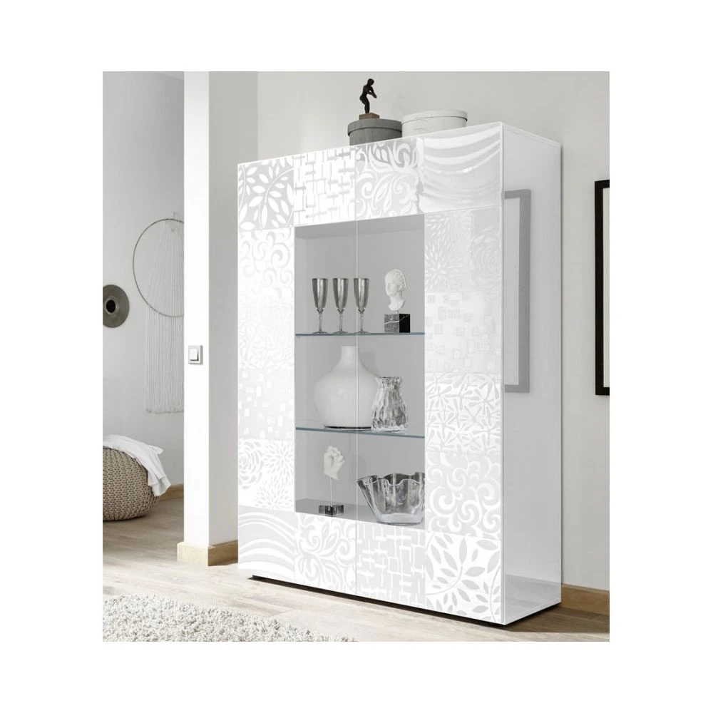 Points forts Tousmesmeubles Vitrine 2 portes Laqué Blanc brillant – BARI