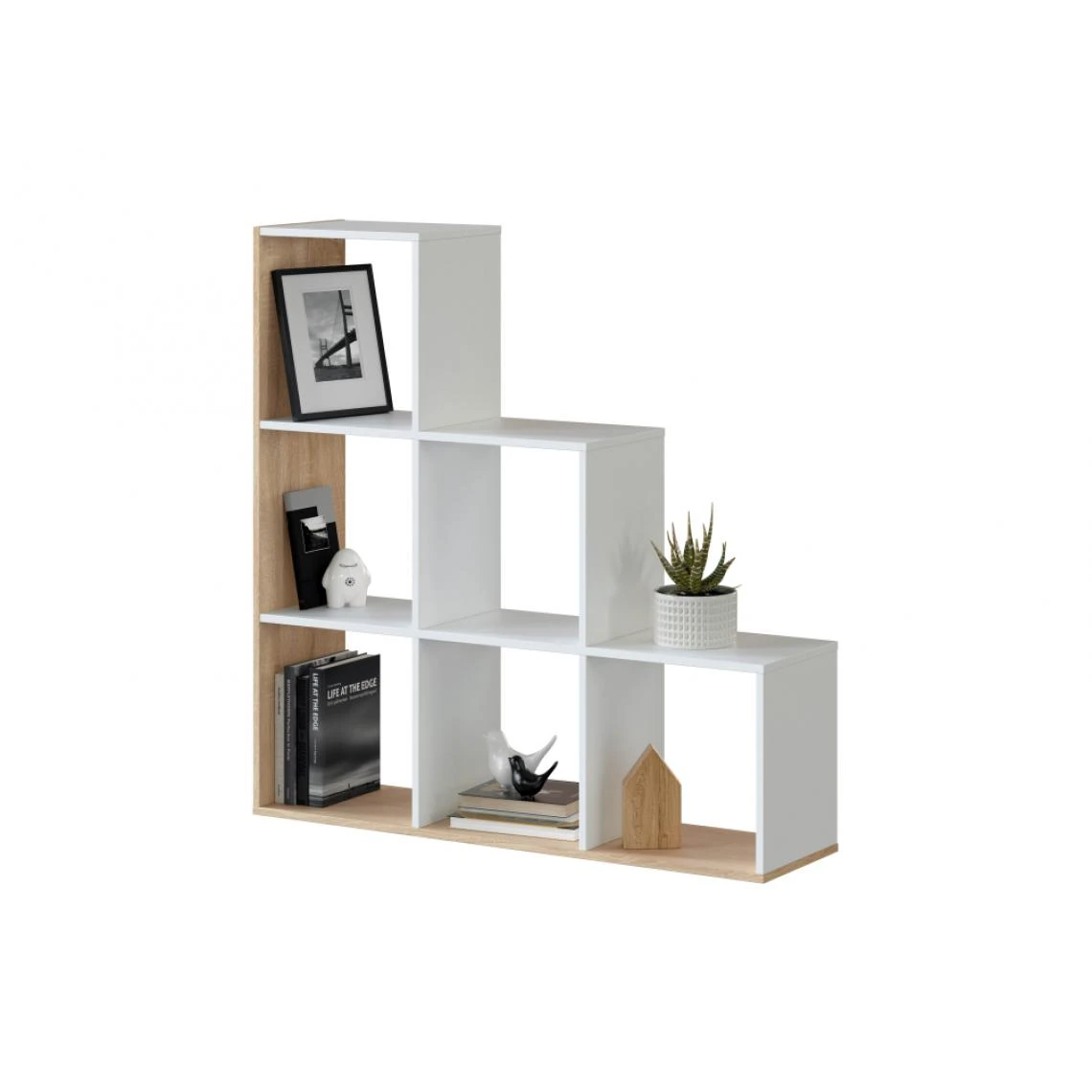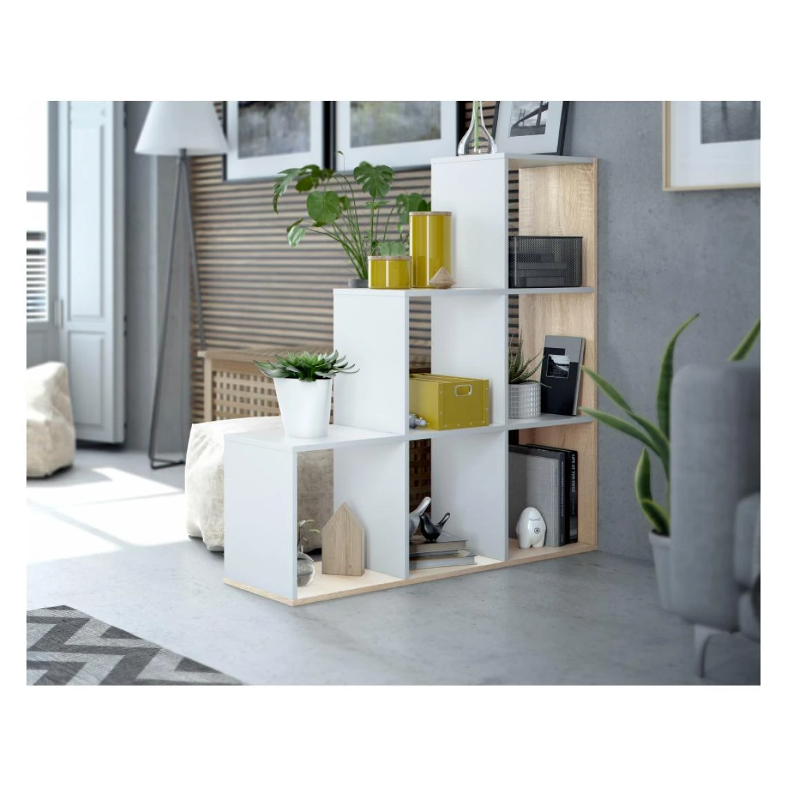 Points forts Usinestreet Bibliothèque escalier JADE avec 6 cubes L108cm x H110cm – Blanc / Bois