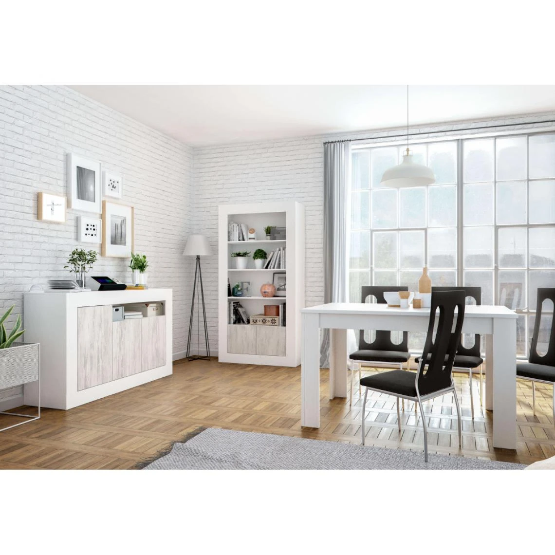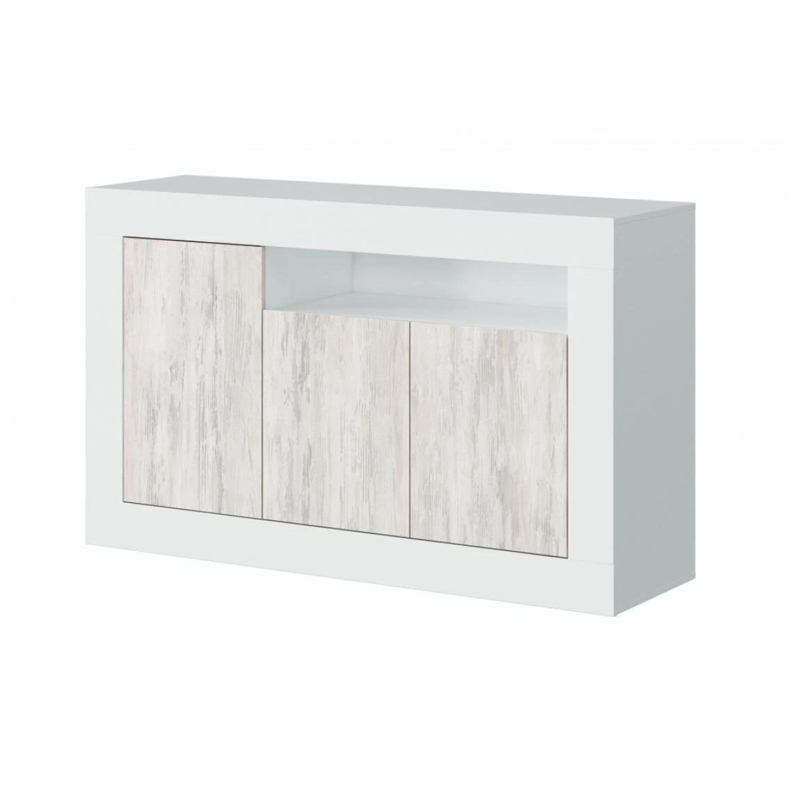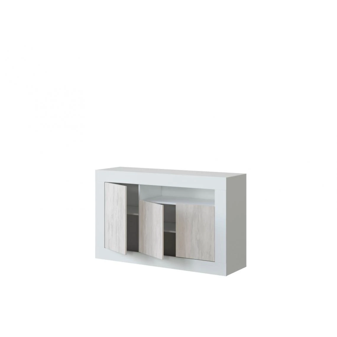 Buffet moderne GWEN effet blanchi 3 portes et 1 étagère L144cm