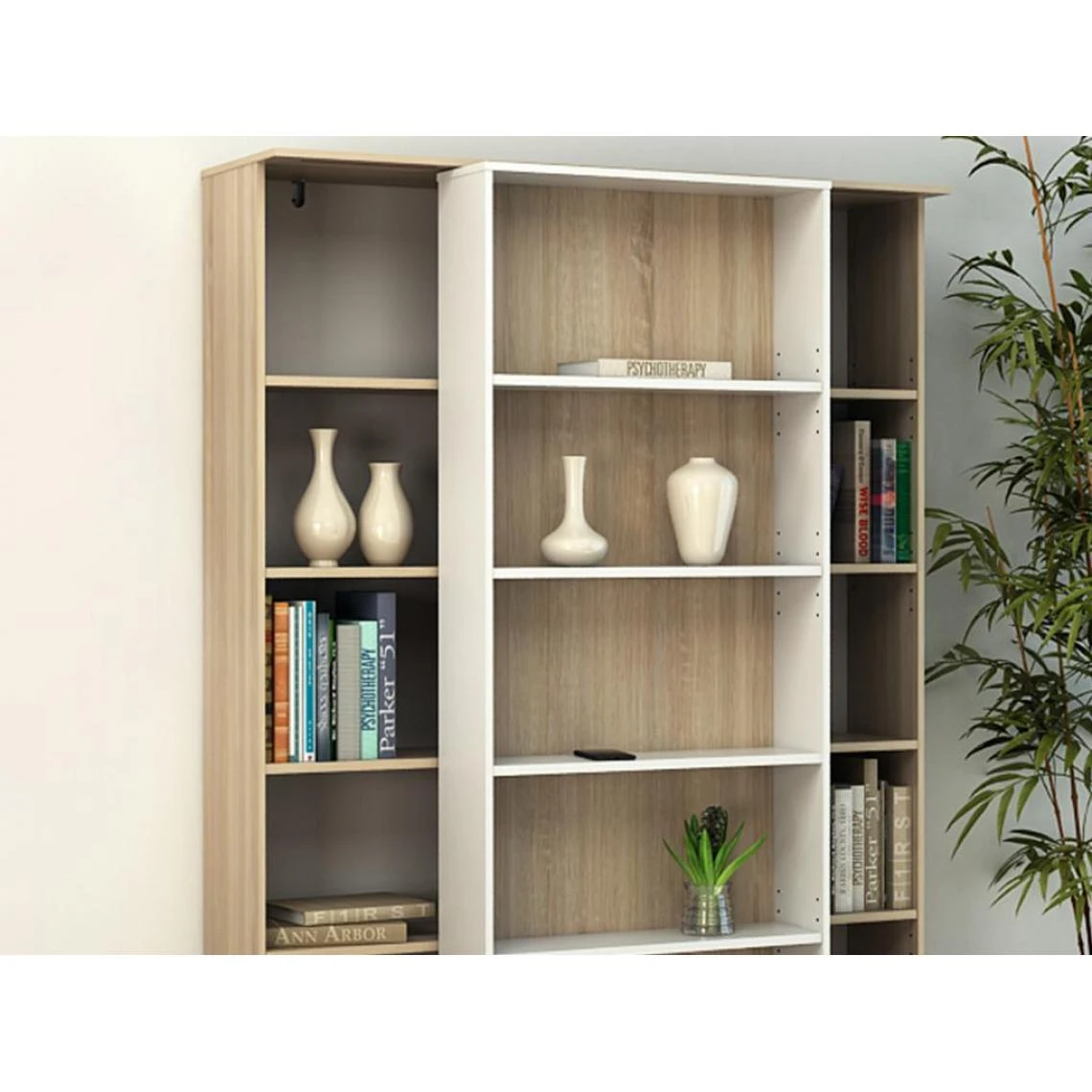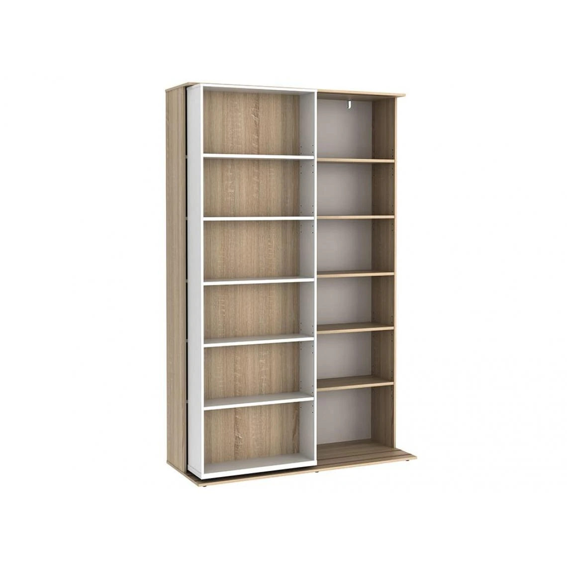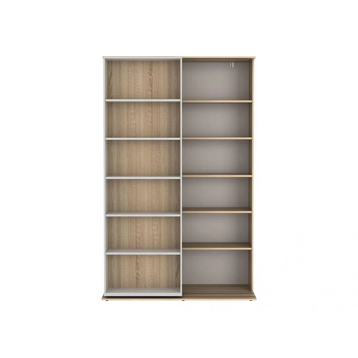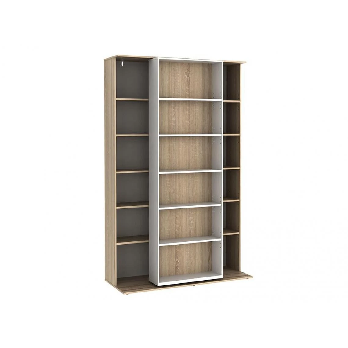 Points forts Vente-Unique Bibliothèque coulissante avec 18 niches – Naturel et blanc – PRALI