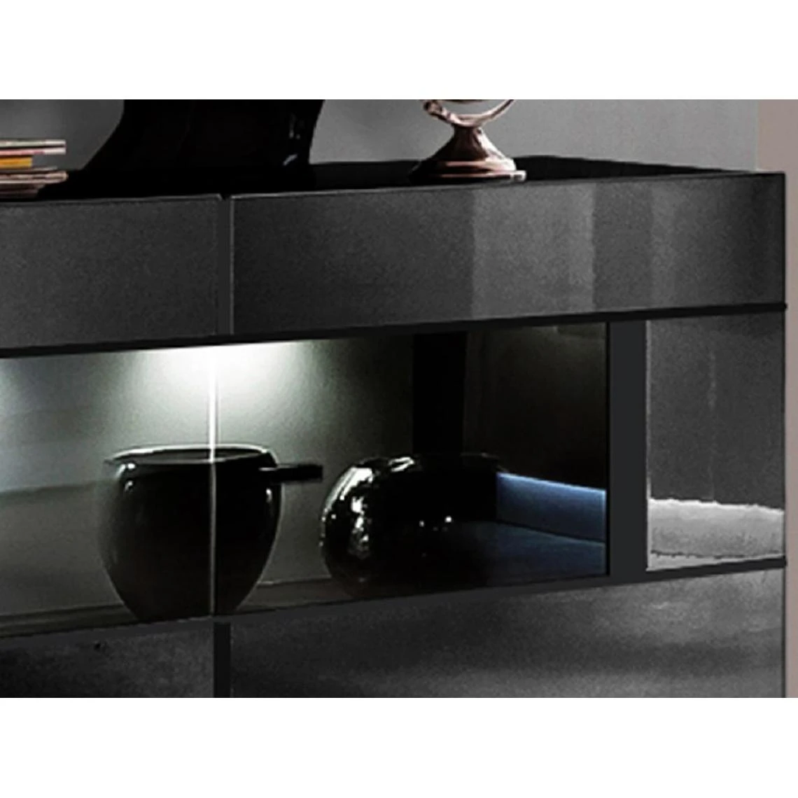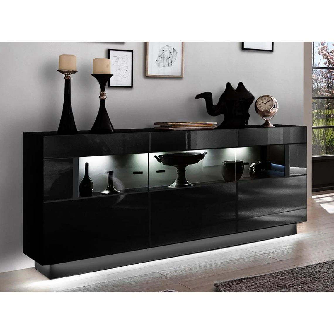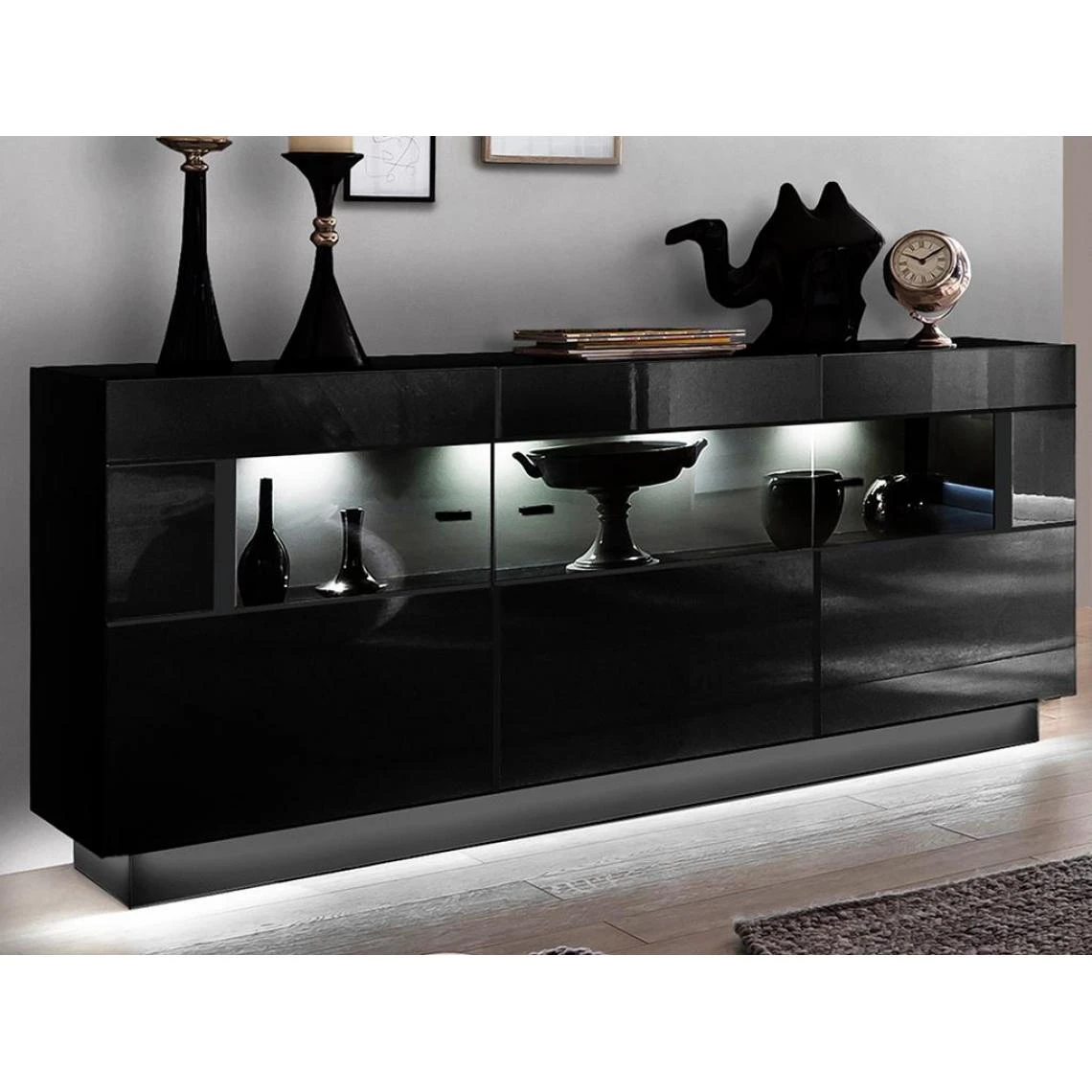 Les LEDs finement disposées sur dans les niches ainsi que la finition laquée des portes de ce buffet lui confÚrent un aspect tendance et élégant. Grùce à son design épuré, il épousera parfaitement les formes des objets que vous disposerez dans ses portes vitrées