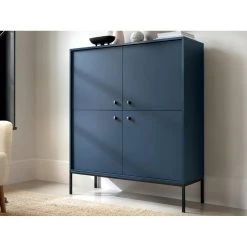 Points forts Vente-Unique Buffet haut – 4 portes – Bleu – BOGDAN