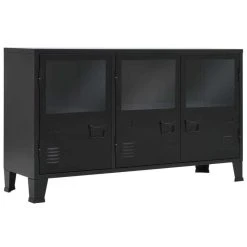 Notre buffet est non seulement idéal pour ranger vos effets personnels, mais aussi pour ajouter une touche décorative unique à votre maison grâce à son style cool et industriel. Le buffet dispose de 2 étagères intérieures et de 3 portes avec fenêtres vitrées et offre suffisamment d’espace pour ranger vos vêtements, livres et autres accessoires. Chaque porte est munie d’un support de bristol et de trous d’aération pour ajouter à son aspect industriel. Ce buffet est fabriqué en tôle, ce qui le rend durable et facile à nettoyer. Son dessus plat forme une surface pratique sur laquelle vous pouvez placer des paniers de fruits, des vases ou des objets décoratifs. L’assemblage est facile.