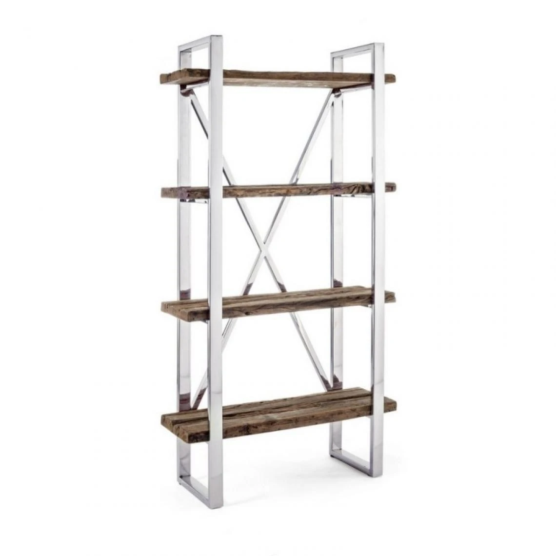 - Structure en acier inoxydable, plateaux en bois recyclé