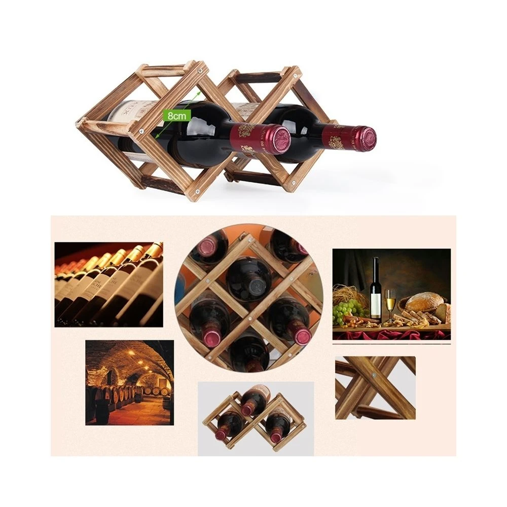Rangement de Cuisine 10 bouteilles racks support à vin pliable porte-vin en bois bar étagère d’affichage (cuisson au carbone)